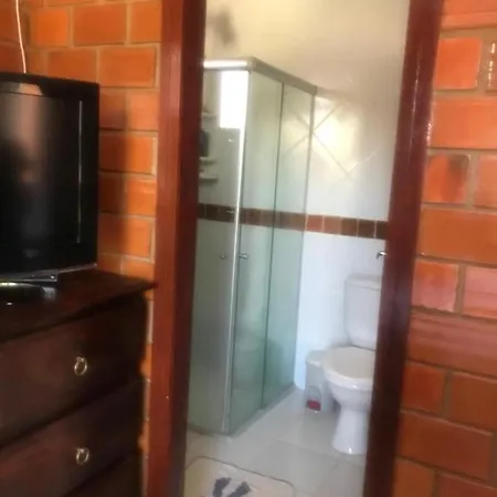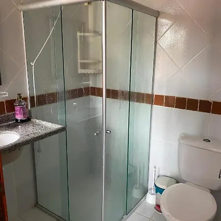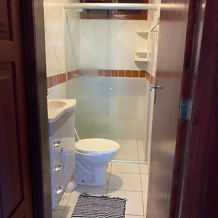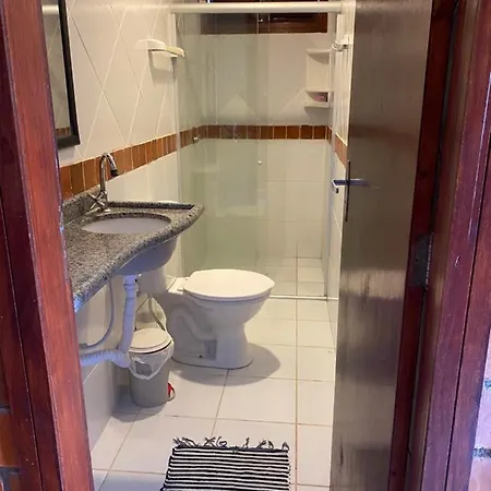 Bathroom facilities at Casa 14 - Condominio Portal Das Flores also include a separate toilet and a shower.